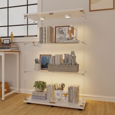 72" Arched Glass Display Cabinet, 4-Tier Display Curio Cabinet with 20 Color LED Lights, Modern Display Case Shelf for Living Room, Natural