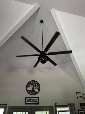 72" Casa Vieja Modern Outdoor Ceiling Fan with LED Light Remote Control Black Oak Wood Lantern Shade Damp Rated for Patio Exterior