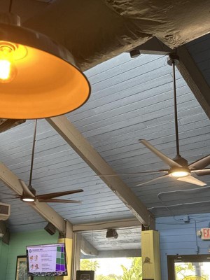 We love this fan, it is not only great looking on our outdoor patio but is quiet as well. You really have not ideal it is even there. I would highly recommend this fan.