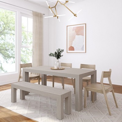 72" Classic Solid Wood Dining Table Set with Bench, Seashell Wirebrush, + 4 Chairs Blonde