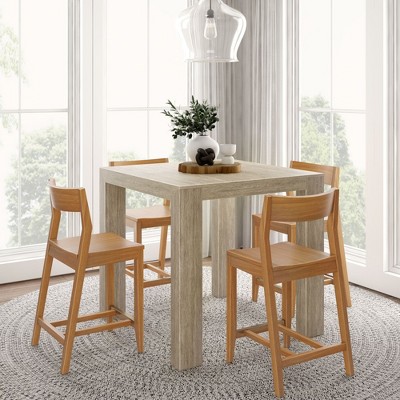 When I ordered this table I did not realize it was textured (wire brushed) so I was worried I was going to have to return it. But when it arrived I was very happy to see the texturing is not very deep so it is not the crumb catcher I thought it was going to be. We are very happy with it! It is very sturdy and the chairs are comfortable! The contrast of the pecan table in the black chairs is very modern looking. Very impressive!!!!