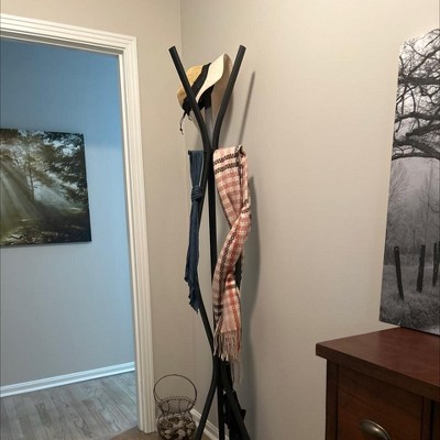 72" Contemporary Metal Coat Rack Black - EveryRoom: Sturdy Base, 3 Pegs, Office/Home Use