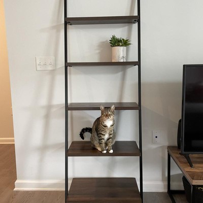72" Loring 5 Shelf Leaning Bookshelf Walnut - Threshold™: Modern Storage, Metal Frame
