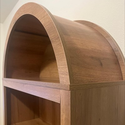 72" Arched Pantry Storage Cabinet with Doors - 5-Tier Open Shelves with Handles, Anti-Tip Design for Living Room or Kitchen, Walnut Color