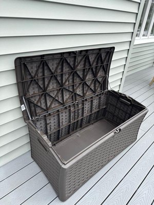 Outdoor organization can be a serious challenge-and it only gets worse if left unchecked. Fortunately, Suncast manufactures a range of smart storage solutions tailored for spaces big and small. This 72 Gallon Medium Deck Box is flexibly designed to accommodate the most common storage issues and looks good doing it! The decorative wicker pattern stands out in any space, while the durable resin construction ensures easy maintenance and allows for year-round use. Plus, the lid of the unit can be padlocked to provide additional security (padlock not included).