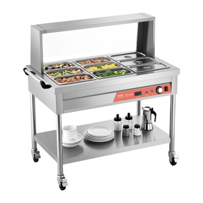 72QT Commercial Food Warmer 1500W , 9-Pan Stainless Steel Steam Table with Temperature Control, Acrylic Shield & Undershelf 110V
