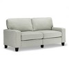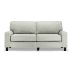 Whether you're furnishing your first home or seeking a space-saving solution for your existing space, Serta delivers. Our conveniently packaged sofas arrive directly at your door in one carton, and they provide the perfect blend of style and comfort you've come to expect from Serta. Don't let living in a modestly sized apartment, or being on a managed budget, be the limiting factors to creating a welcoming home. The Serta Palisades collection is designed specifically for smaller living spaces, offering 61", 73" and 78" length options. With a seat depth of 20.5" you can still relax comfortably without the sofa taking up too much space. However, this means the sofa's proportions are better-suited for users under 6 feet tall. The Palisades 73", 2-seater sofa arrives in a single convenient box. The unopened box will fit any doorway, hall, stairwell, or elevator. Once in your home, it will thrive in smaller living rooms or home offices, but is a versatile choice for dorms, kid’s rooms, den, and family rooms. Plus, its low-profile will make any smaller space feel open and airy, giving the freedom to mix and match with other furniture pieces. This inviting sofa features clean lines and track arms for a timeless look. Upholstered in an anti-pilling polyester fabric or durable bonded leather, the Palisades is easy to care for and spills are simple to clean. 16 color options are available to complement your décor. Please note that the actual color may differ slightly from what appears online depending on the amount of light and the positioning of the sofa in any space. Soft pillow backs, generously filled with soft fibers, rest against a backrest with structured webbing to keep things comfortable and supportive. The seat cushions are filled with high-density, non-recycled Serta quality foam, which cover individually wrapped pocket coils for a supportive core and semi-plush sit. Welcome the Serta Palisades Sofa into your home for modern style and comfort with space-saving functionality. Lounging or relaxing has never been so convenient.