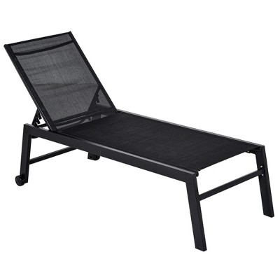 75.2" Outdoor Black HDPE Chaise Lounge Chair with 5-Position Adjustable Backrest, Wheels & Cup Holder for Patio or Poolside -3irtyhousy