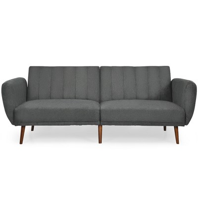 75.5” Convertible Futon Sofa Bed, Linen Flannel Small Couch Sofa with Wood Legs & 700lbs Capacity, Adjustable Folding Loveseat, Mid Century Modern