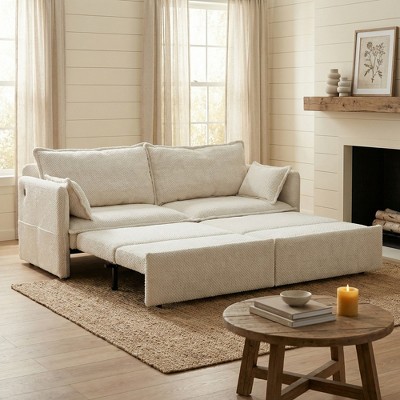 75'' Futon Sofa Bed, Convertible Loveseat, Adjustable Backrest, Side Pockets, Space-Saving Sleeper Sofa for Small Spaces, Black