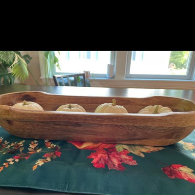 Bring natural charm to your entertainment table with this Mango Wood Serving Bowl from Threshold™. This serving bowl makes a convenient addition to your serveware collection. It features a deep oval shape in a brown wood grain finish for natural appeal. The sturdy platter can be spot cleaned for easy care. Simply serve breads, appetizers or small snacks or display as a decorative table accent when not in use.