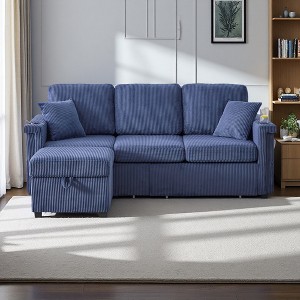 76" Corduroy L-Shaped Sectional Sofa with Pull-Out Storage & USB