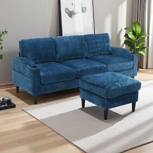 - Modern Chenille Polyester Sectional Sofa ¨C L-Shaped Couch with Storage Ottoman, 3-Seat Interior Furniture for Living Room or Apartment