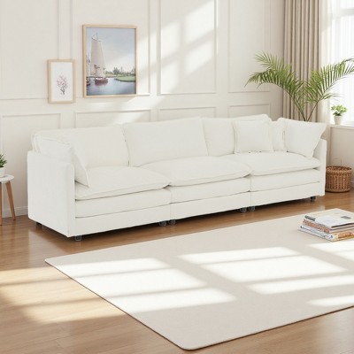 77" Modern Square Arm Boucle Sofa with Solid Wood Base, Brown Corduroy Loveseat Sofa Couch for Small Living Room, Bedroom, or Apartment-Panipeachy