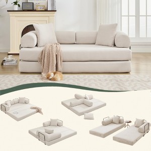 78.5'' Corduroy Folding Convertible 3-Seater Sofa with Sleeper and Modular DIY Design
