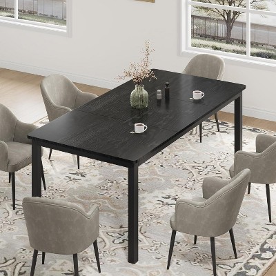 Rectangle Dining Table for 6-8 People, Large Rectangle Kitchen Table, Modern Industrial Dining Room Table, Metal Legs, Round Corners