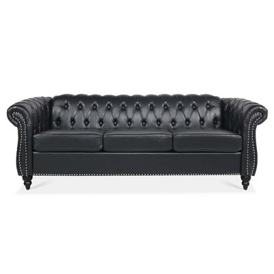 Bring a timeless statement to your living space with this Chesterfield-style faux leather sofa. The hand-tufted design, rolled arms, and deep seating create a luxurious yet inviting atmosphere. Crafted with durable materials and designed to accommodate three people comfortably, it's ideal for living rooms, apartments, and offices alike.