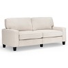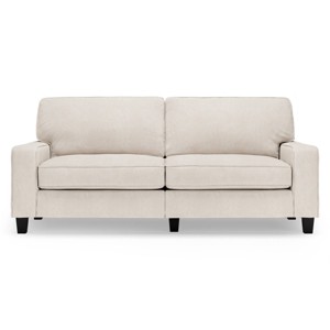 Whether you're furnishing your first home or seeking a space-saving solution for your existing space, Serta delivers. Our conveniently packaged sofas arrive directly at your door in one carton, and they provide the perfect blend of style and comfort you've come to expect from Serta. Don't let living in a modestly sized apartment, or being on a managed budget, be the limiting factors to creating a welcoming home. The Serta Palisades collection is designed specifically for smaller living spaces, offering 61", 73" and 78" length options. With a seat depth of 20.5" you can still relax comfortably without the sofa taking up too much space. However, this means the sofa's proportions are better-suited for users under 6 feet tall. The Palisades 78", 3-seater sofa arrives in a single convenient box. The unopened box will fit any doorway, hall, stairwell, or elevator. Once in your home, it will thrive in smaller living rooms or home offices, but is a versatile choice for dorms, kid’s rooms, den, and family rooms. Plus, its low-profile will make any smaller space feel open and airy, giving the freedom to mix and match with other furniture pieces. This inviting sofa features clean lines and track arms for a timeless look. Upholstered in an anti-pilling polyester fabric or durable bonded leather, the Palisades is easy to care for and spills are simple to clean. 16 color options are available to complement your décor. Please note that the actual color may differ slightly from what appears online depending on the amount of light and the positioning of the sofa in any space. Soft pillow backs, generously filled with soft fibers, rest against a backrest with structured webbing to keep things comfortable and supportive. The seat cushions are filled with high-density, non-recycled Serta quality foam, which cover individually wrapped pocket coils for a supportive core and semi-plush sit. Welcome the Serta Palisades Sofa into your home for modern style and comfort with space-saving functionality. Lounging or relaxing has never been so convenient.