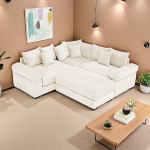 79.1" Corduroy Cloud Sectional Sofa Bed with Thick Cushions & Ottoman