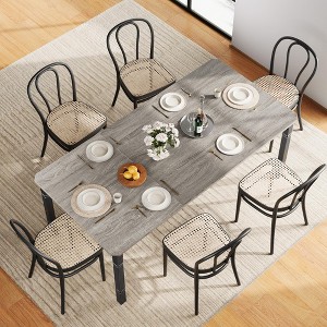- [Sturdy Industrial Dining Table for Everyday Family Use] : Crafted with high-density MDF boards and thickened metal legs, this dinner table offers reliable strength and stability. The matte black coating is waterproof and rust-resistant, ensuring rectangle dining table for 6 looks beautiful for years.