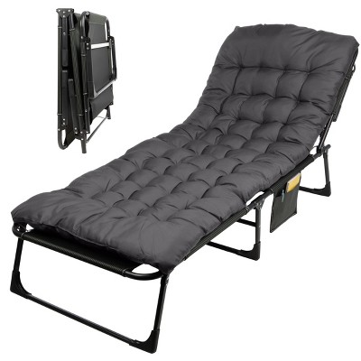 79" Portable Folding Bed with Cushion and Pillow, Camping Cot for Adults with Supports 500 Lbs, Lightweight Tent Cot for Patio Beach Outdoor, Grey