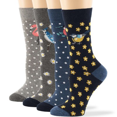 Women Cotton Calf Patterned Socks - 4 Pack - Coffee, Puppy, Flowers, Birds, Cat - Shoe Size 5-9 M, 8-12 L - Multicolors | 7BIGSTARS KINGDOM