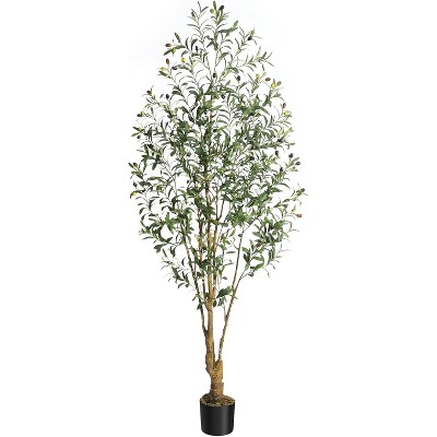 7ft Artificial Olive Tree with Silk Leaves, Faux Potted Plant with Realistic Branches & Fruits for Home Office Living Room Decor