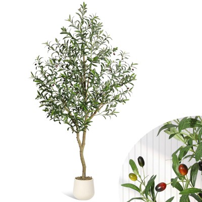 5FT Faux Olive Tree Tall,Olive Trees Artificia Indoor with White Planter and Green Moss, Fake UV Resistant Artificial Tree, 1 Pcs