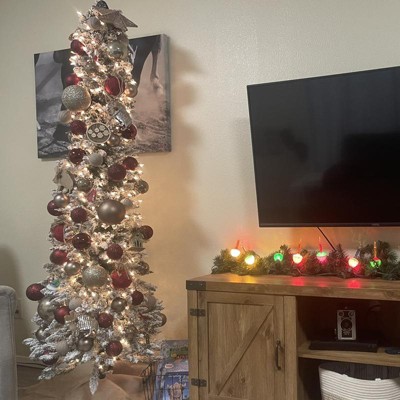 7ft Nearly Natural Pre-Lit Flocked Slim Artificial Christmas Tree Clear Lights - 2 of 47ft Nearly Natural Pre-Lit Flocked Slim Artificial Christmas Tree Clear Lights - 3 of 47ft Nearly Natural Pre-Lit Flocked Slim Artificial Christmas Tree Clear Lights - 4 of 4