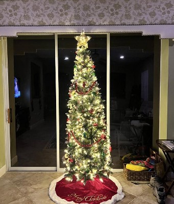 Crafted with 818 snowy branch tips, 40 pine cones, and 39 clusters of red berries, the 7 ft Xmas tree exudes a vibrant, snowy charm. Thanks to 350 warm white LED lights, the Christmas tree emits a tender luminescence that dances among the branches. In addition, it is made of selected PVC material that is fireproof, non-allergic, anti-fading, and smell-free. The secure Xmas addition also comes with a hinged structure that simplifies the assembly process. The folding metal stand provides strong support, making setup more convenient. Its slim, pencil shape allows for versatile placement in homes, offices, shops, or festive gatherings. Merry Christmas!