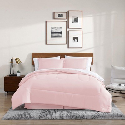 Product Name: 7PC Bedding Bundle, Patterned Comforter and Solid Sheet Set - Becky Cameron, Meadow Floral Stripe Pink, Queen