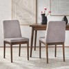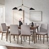 Perfectly named, The 7pc Element Mid Century Dining Set gives a modern update to your dining room. The classic table is a perfect fit for six stylized parson chairs boasting cushioned low backs upholstered in light gray fabric. All feature rubberwood legs and a laminated MDF table top finished in walnut. Picture yourself seated here enjoying a totally chic dining experience.