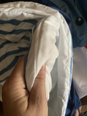 [This review was collected as part of a promotion.] This is an adorable set. Not too childish for my 10 year old but still fun. The sheets are almost silky like and he says he does not get hot at all when he sleeps. The comforter is plush and lightweight with a simple striped design. I’m hoping the white stays looking clean and crisp. He loves everything about this set!