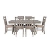 Outfit your dining room with the perfect 7-piece set, ready to fit any large family. This gorgeous collection has a weathered gray finish and neutral tan fabric. Set overtop an x-based frame, its spacious tabletop offers ample food and elbow room to accommodate both large and small dinners. It has a durable rubberwood, MDF and Ash veneer construction that delivers an updated farmhouse vibe. You will feel right at home when you’re gathering with family and friends around this comfortable set. Some assembly required.
