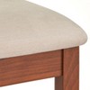 - Constructed of MDF with veneered top, solid Beechwood legs, fabric, and foam
