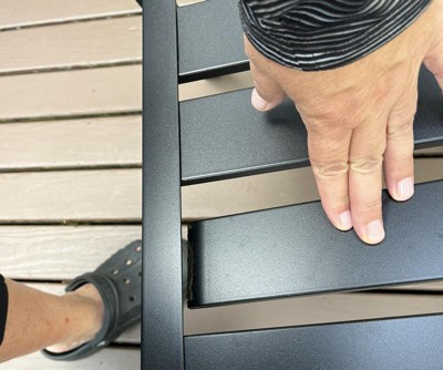 - Slat Tabletop: The set FEATURES a sleek and modern black table with a distinctive slat tabletop design that adds a touch of sophistication to your outdoor space, making it perfect for both casual and formal occasions.