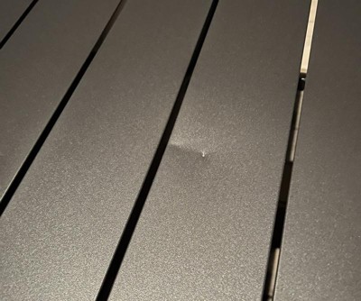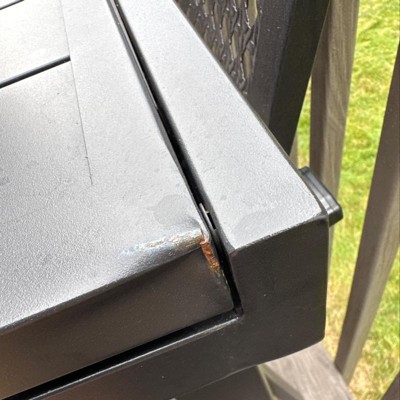 A: Dear Sarah, the steel frame is powder coated for lasting beauty and water- & rust- resistance, so you can use it outdoors normally as other tables, but you’d better avoid using sharp objects to scratch it for many years of using it. Have a nice day!