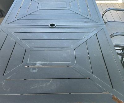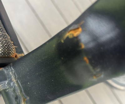 Order #9181570163911. Delivered in May 2023, not taken outside and assembled until later in the month. After just eight months the chairs and tables are bubbling and rusting. Table surface will need stripping and respraying. AND DO NOT expect any help from Target: you will just be given the telephone number of the manufacturers... in China. Good luck with that.