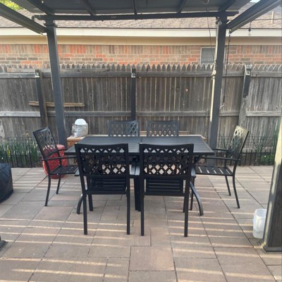 7pc Outdoor Rectangular Table & 6 Chairs with Grid Design - Black - Captiva Designs: Iron Construction, UV-Resistant