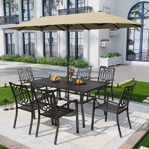 - Complete 7-Piece Dining Set: This versatile set includes a spacious dining table and six comfortable armrest chairs, offering ample seating for your outdoor gatherings.