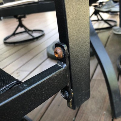 The swivel armchairs with padded cushions and stylish mesh-style chair backs offer both dining and conversation seating, ensuring maximum comfort. It is designed to make your dining moments memorable. Crafted from E-coating and powder-coated steel frame, it's both sturdy and durable, making it suitable for any outdoor setting. Rediscover the joy of outdoor living with our chic and comfortable patio furniture set, perfect for relaxation and hosting distinguished guests in style.