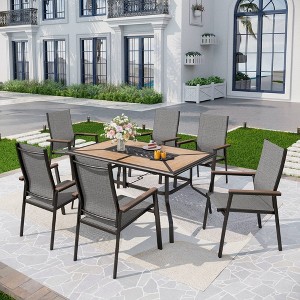 - Complete Patio Dining Set: This patio dining set includes 1 table and 6 armrest chairs, providing a comprehensive outdoor dining experience.