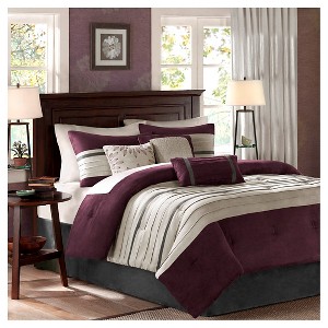 The Dakota 7 Piece Comforter Set offers a classic and refined update to your bedroom decor. This transitional style comforter features a pieced microsuede design in rich contrasting colors to create an incredibly soft look and feel. The 2 matching shams also flaunt a pieced construction to coordinate with the faux suede comforter. A solid bed skirt and 3 decorative pillows with a mix of embroidered designs add the perfect finishing touches to complete this lush traditionally-inspired comforter. Machine washable for easy care, items in the set may come in a rolled or compressed packaging, which will need to be fluffed up or steam ironed before use to remove wrinkles.