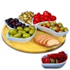this is an amazing choice for anyone who loves charcuterie style but hates when foods touch each other, easy clean up, and looks beautiful on a table setting. snacks have never looked this good and it spins!