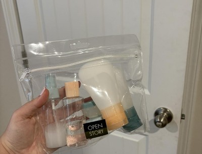 submitted byPatty - 4 months agoA: Hello R – Thank you for your interest in this product! This clear toiletry set includes a bottle, a spray bottle, two pouches, and two jars perfect for safely storing your shampoo, conditioner, face wash, and more. It's designed to hold enough for up to 7 days of travel. I hope this helps! - Monica