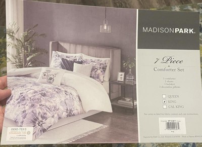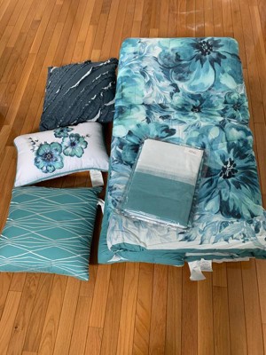 [This review was collected as part of a promotion.] I have been searching king size comforter from so long, n bought this Madison park 7 - piece Teal color comforter set.This is an EXCELLENT quality comforter,Nice bedding. The design is printed clearly, the colours are true to the picture and description. I bought the King size and the dimensions were accurate and fits as expected. Fits in well with our new bedroom furniture and the decorative pillows that come with it are made of excellent material. Must buy for comfort and quality! This comforter is so perfect, very comfortable, soft, and perfect for both cold and hot weather. Very nice fabric and look fantastic on my king bed.Love the product. The floral design and color combination are pretty , quarter part of comforter is white n then starts the floral print..really love this print.This came with the combination of teal n white color. The comforter covers the mattress while laying flat,it's not too bulky, overall really comfortable. the flowers are on the entire comforter. I also like the simple shams with decorative pillows. We can also put some other colored combination pillows to make it look more rich. This set also includes bed skirt in it. Definitely recommend it. Product quantity:1 comforter, 2 shams,1 bed skirt, 3 decorative pillows.