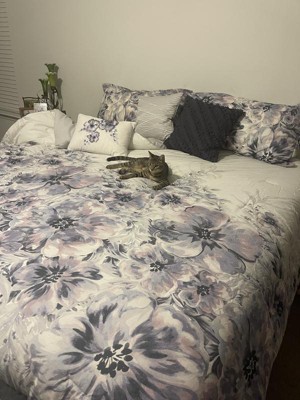 [This review was collected as part of a promotion.] This is such a nice welcome to our previous,worn out comforter set. The shades of purple,lavender and gray are very calming and pair well with the wall color. The pillows in contrasting shades add a great contrast. The coordinating bed skirt in soft gray lends a nice finishing touch. We like how thick and durable the comforter is and it washes up well. Our cat loves it! Definitely recommend this well-coordinated set! As a side note, our yellow velour blanket adds a bright punch of color beneath the comforter.