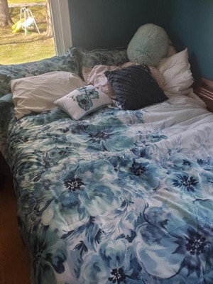 [This review was collected as part of a promotion.] First off, I'm completely in love with the design of this comforter. I love the colorful blue flowers, but yet very simplistic. The quality is very good as well and feels very durable. The set comes with the comforter, pillows, pillow sheets and a sheet for the bottom. It is very easy to put on the bed and really makes my room more vibrant. So happy to have received this.