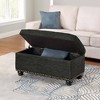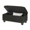 The Designs4Comfort 7th Avenue Storage Ottoman Bench by Breighton Home brings together timeless style and everyday functionality to elevate any room. Designed with versatility in mind, this spacious ottoman serves as extra seating, a comfortable footrest, and a stylish storage solution all in one. Whether placed in the entryway, living room, or bedroom, its elegant design fits effortlessly into both traditional and contemporary spaces. The button-tufted top, detailed stitching, and classic antique nail head trim add a refined touch, while the generous storage compartment neatly conceals blankets, pillows, and other essentials. A built-in pressure hinge keeps the lid open for safe, hands-free access to stored items. Upholstered in beautiful soft fabric and filled with plush foam for enhanced comfort, this piece is as cozy as it is chic. Built on a durable manufactured wood frame and supported by beautifully turned solid wood feet, this bench is as sturdy as it is stylish. Assembly is quick and easy, just attach the legs. With a wide range of sophisticated fabrics and finishes to choose from, the 7th Avenue Ottoman Bench is the perfect finishing touch for any living area.