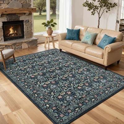 8*10FT Boho Geometric Large Rug, Stain-Resistant Low Pile Indoor Carpet for Bedroom Dining Living Room-Black